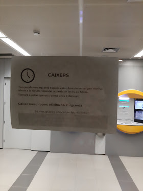 Porto uns dies veiem que la Oficina de la Caixabank quan tanquen també tanquen el accès al Caixer automàtic, porten uns dies que si treus efectiu abans de les 14:30 ja no ho pots fer fins demà a les 8 :30 del matí .